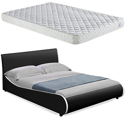 Corium® Polsterbett "Nizza" mit Matratze [140x200cm][schwarz][Kaltschaum] - mit PU-Leder / Kunstlederbezug / mit Stecklattenrost /